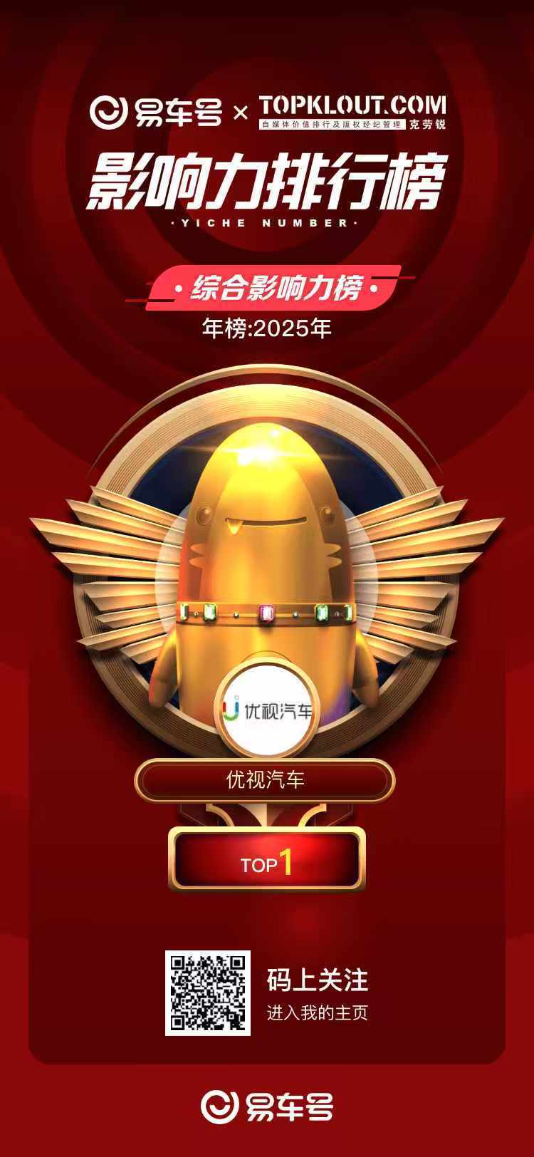 在刚刚揭晓的「易车号2025年度归纳影响力榜」中,优视轿车荣登榜首,拿下第一名!